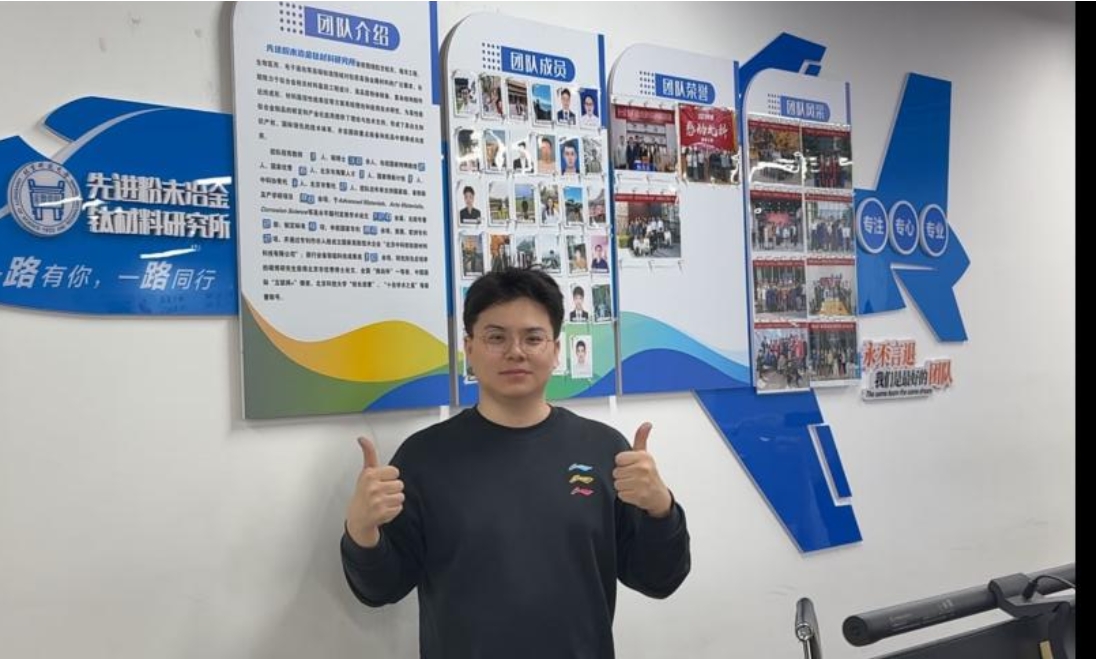个人的进步根植于团队力量。作为先进粉末冶金钛材料研究室一员,他积极参与集体工作,随团队荣获2024年“感动北科”新闻人物荣誉称号。同时,他坚持“绝知此事要躬行”,通过校企合作项目,与产业研发人员并肩攻关高强高模量钛合金板材的工艺设计,将理论知识转化为实际解决方案。不仅体现了学以致用的理念,更展现了科研之路中团队协作与产学研融合的核心价值。