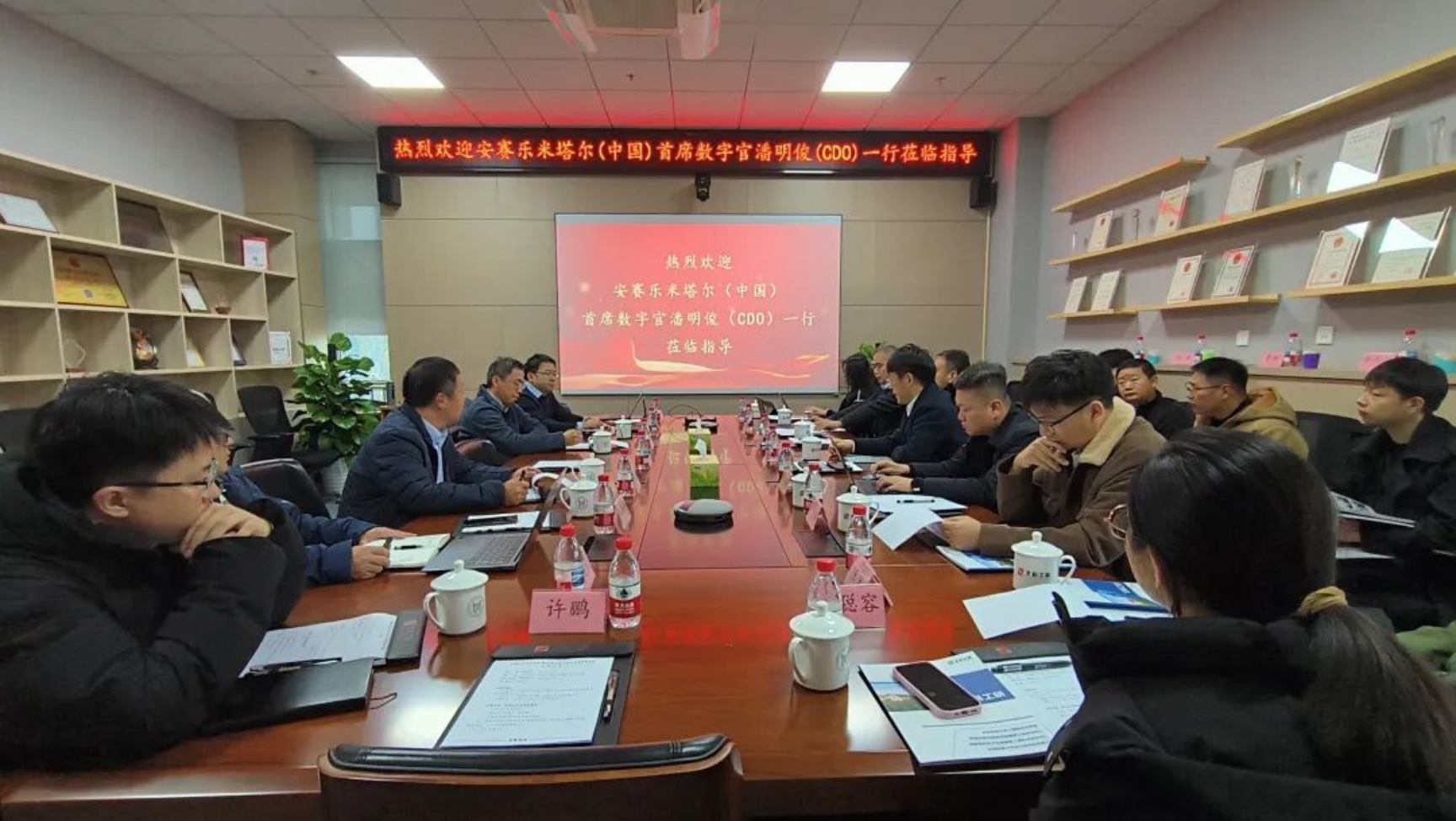 2025年11月28日,安赛乐米塔尔津西(常州)新材料有限公司(以下简称 “NEMM”)首席数字官潘明俊一行来访高效轧制与智能制造国家工程研究中心(以下简称 “中心”)主任、北京科技大学设计研究院有限公司(以下简称“设计院公司”)董事长何安瑞,中心副主任、设计院公司副董事长张勇军,设计院公司总经理郭强,副总经理荆丰伟出席交流活动。