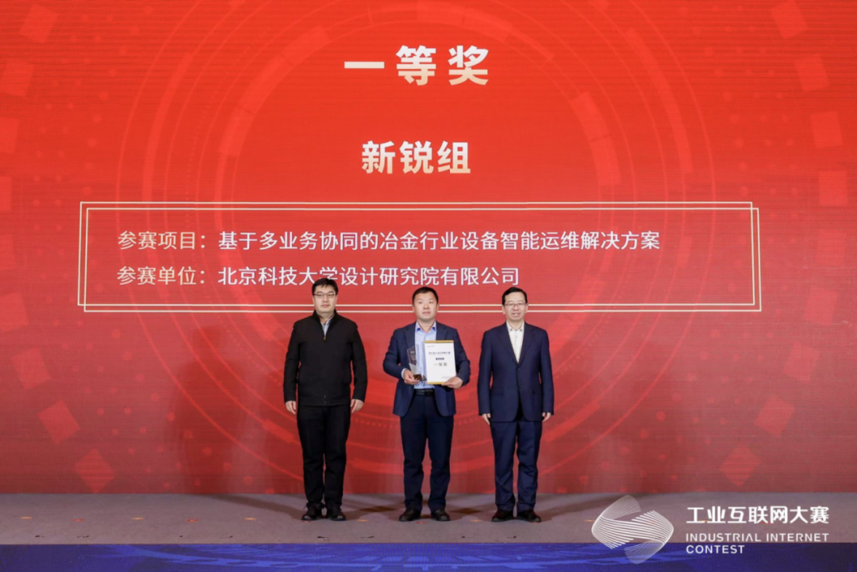 蟾宫折桂!12月12日,第七届中国工业互联网大赛颁奖典礼在北京圆满落下帷幕。北京科技大学设计研究院有限公司(以下简称“设计院公司”)携《基于多业务协同的冶金行业设备智能运维解决方案》参赛,凭借突出的技术创新力与行业应用价值,从700余支参赛队伍中脱颖而出,一举夺得新锐组全国一等奖,设计院公司员工实力再获国家级认可。